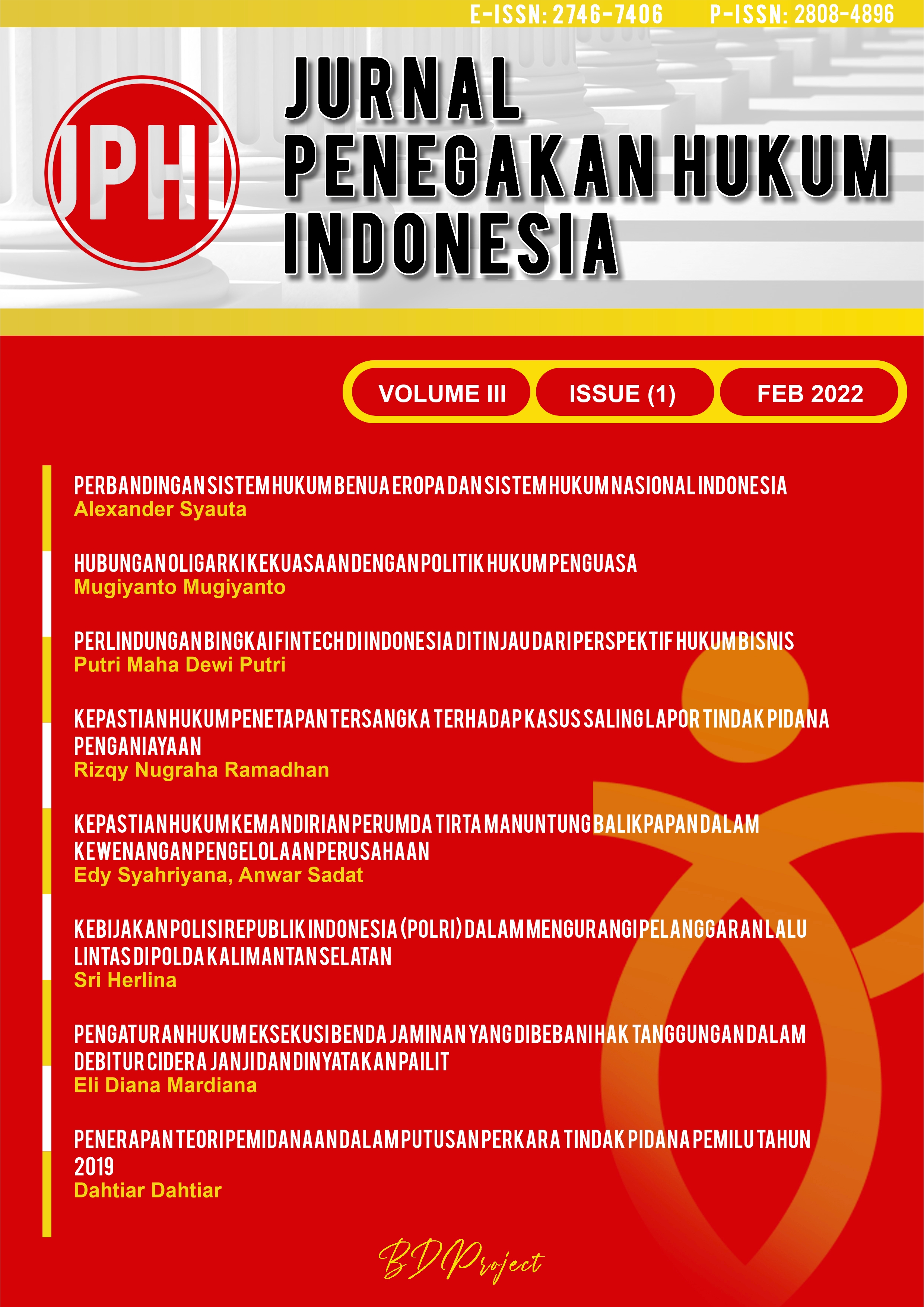 Syauta, A. (2022). Perbandingan Sistem Hukum Benua Eropa Dan Sistem Hukum Nasional Indonesia. Jurnal Penegakan Hukum Indonesia, 3(1), 1-13. https://doi.org/10.51749/jphi.v3i1.53